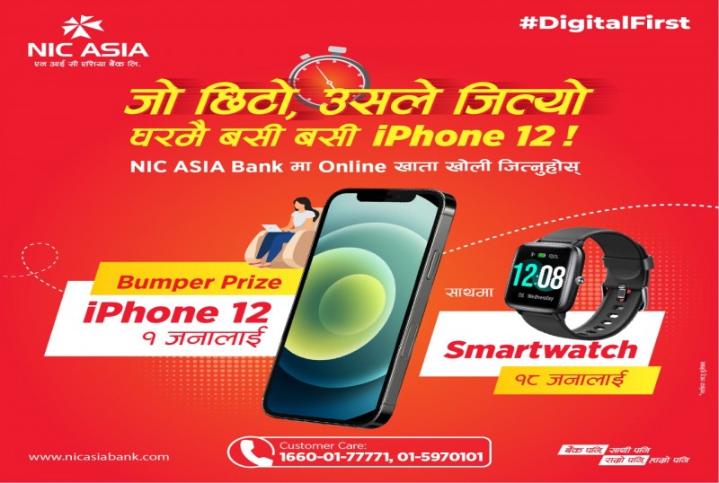 एनआईसी एशियाको खाता खोल्नेले जिते आईफोन–१२ र स्मार्टवाच