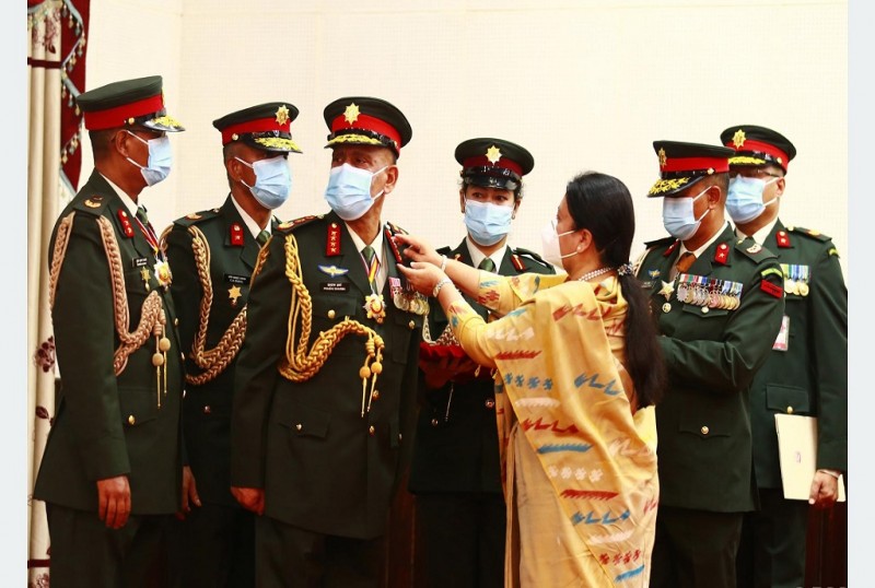 राष्ट्रपति भण्डारीद्वारा नवनियुक्त प्रधानसेनापति शर्मालाई दर्ज्यानी चिह्न प्रदान