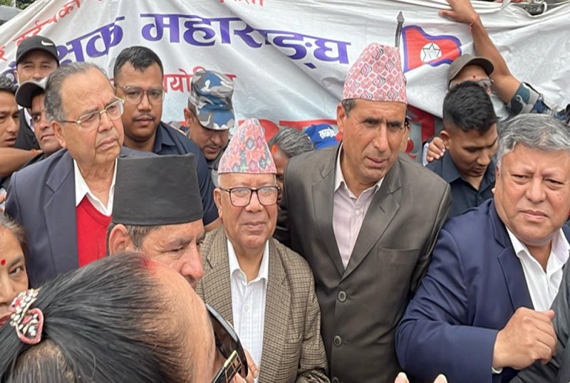 शिक्षक महासंघलाई प्रतिपक्षको साथ, आन्दोलनमा ऐक्यबद्धता जनाउन पुगे नेपाल–खनाल