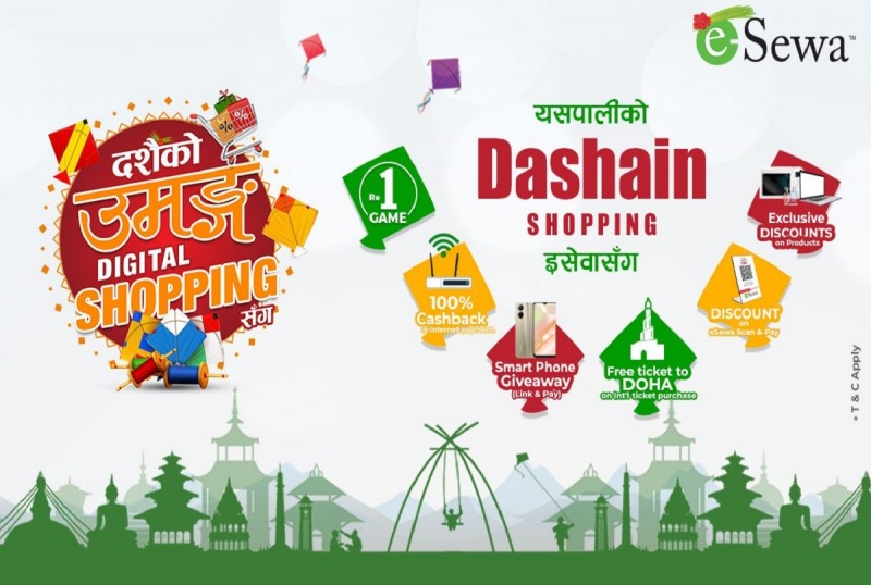 काठमाडौं - नेपालको पहिलो र अग्रणी भुक्तानी सेवा प्रदायक इसेवाले नेपालीहरूको महान चाड दशैँको उपलक्ष्यमा ‘दशैँको उमङ्ग, डिजिटल सपिङ्गसँग’ उपहार योजना सार्वजनिक गरेको छ । दशैँको बेला आम मानिसलाई अनलाइबाट कारोबार गर्न सहज होस् भन्ने उद्देश्यले दशैँको अवसर पारेर इसेवाले यस्तो योजना सार्वजनिक गरेको हो ।