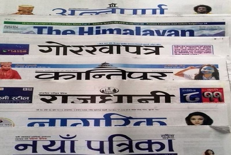 काठमाडौं - संघीय राजधानीबाट सोमबार प्रकाशित विभिन्न पत्रपत्रिकाले नेपाली भूमिबाट सेना फिर्ता लैजान प्रधानमन्त्रीको आग्रह, जिल्लाभर आगो लगाइदिने आलमको धम्की, आश्रयस्थलबाटै ९ शिशु गायब, आलमविरुद्ध मुद्दा चलाउने रौतहटका सरकारी वकिलको मकवानपुर सरुवा, १२ मेडिकल कलेजमाथि छानबिन तीनमा छापालगायतका समाचारलाई प्राथमिकताका साथ छापेका छन् ।