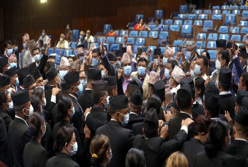 आजको बैठकमा सभामुख सापकोटाले सदन सुरु भएको अभिव्यक्ति दिए लगत्तै प्रमुख प्रतिपक्षी दल नेकपा एमाले सांसदहरूले प्रतिनिधिसभाको रोस्ट्रम घेराउ गर्दै नाराबाजी गरेका थिए । तर, एमाले सांसदको अवरोधबीच बैठक कार्यसूचीमा प्रवेश गरेकाे थियो ।