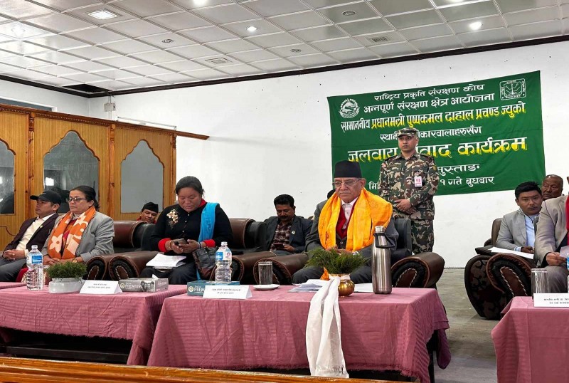 बुधबार मुस्ताङ जिल्लाको जोमसोममा राष्ट्रिय प्रकृति र अन्नपूर्ण संरक्षण क्षेत्र आयोजनाद्वारा आयोजित जलवायु संवाद कार्यक्रममा बोल्दै प्रधानमन्त्री प्रचण्डले जलवायु परिवर्तनबाट हुने क्षति रोक्नका लागि मुस्ताङलाई ५० करोड रुपैयाँ उपलब्ध गराउने बताएका हुन् ।