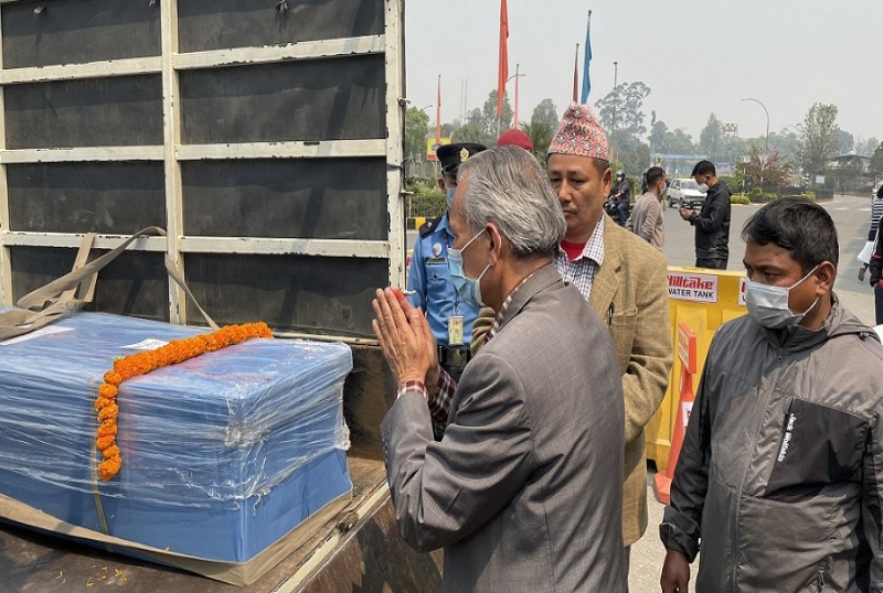 विदेशबाट एकैदिन ल्याइयो १७ नेपालीको शव, विमानस्थल पुगे भट्टराई