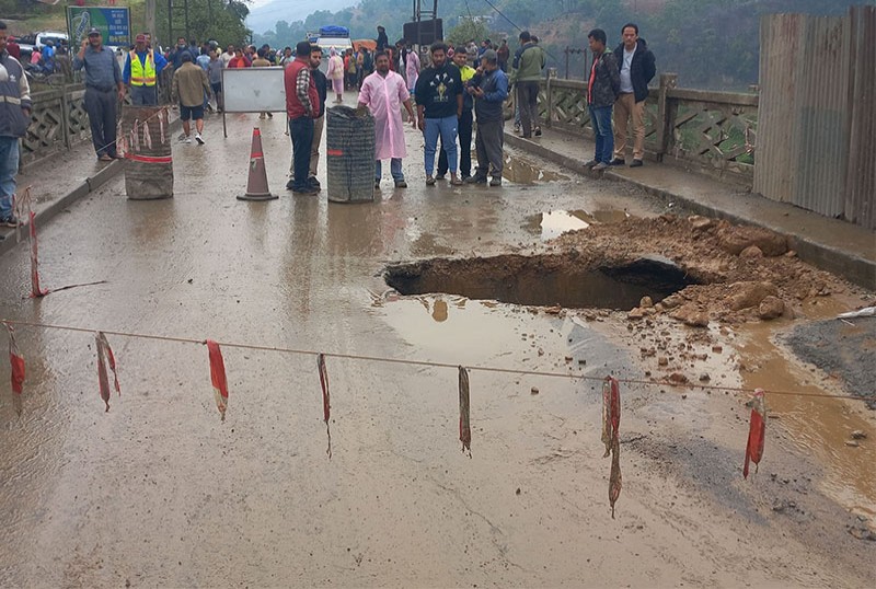 धुनीबेँसी नगरपालिका–६ र थाक्रे गाउँपालिका–८ को सिमाना जोड्ने गणेशखोला पुलमाको जमि भासिँदा सोमबार अपराह्न ४ बजेदेखि ठप्प बनेको राजमार्ग मंगलबार बिहान १० बजेबाट एकतर्फी खुलाइएको हो ।