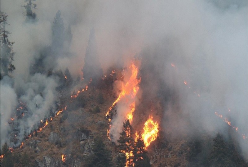 मनाङको ताचैमा लागेको आगो अझै नियन्त्रण बाहिर, बस्ती जाेखिममा