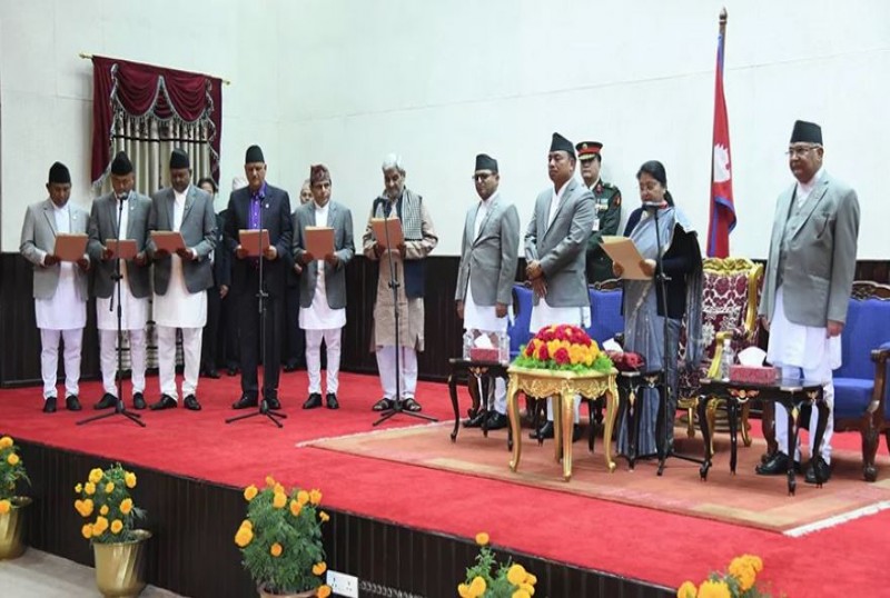 काठमाडौं - प्रधानमन्त्री केपी शर्मा ओलीले बुधबार नियुक्त गरेका नयाँ मन्त्रीहरूले पद तथा गोपनियताको सपथ लिएका छन्।