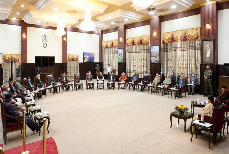 राष्ट्रपति विद्यादेवी भण्डारीले शीतल निवासमा आयोजना गरेको मंगलबारको सर्वदलीय बैठकमा प्रधानमन्त्री ओलीले सरकार र संसद् चल्ने अवस्था नआएपछि विघटन गरेको बताएका हुन् । उनले सरकार र संसद् नचले फेरि पनि विघटन हुने र यसमा आश्चर्य मान्नुपर्ने कुरा नभएको बताएको बैठकमा सहभागी एक नेताले जानकारी दिए ।
