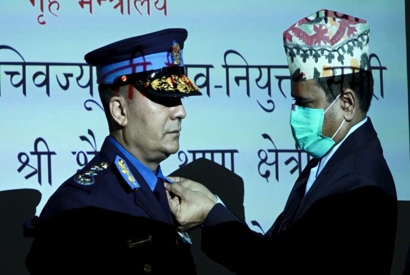 काठमाडौं - नवनियुक्त प्रहरी महानिरीक्षक शैलेश थापा क्षेत्रीले दर्ज्यानी चिन्ह लगाएका छन् । गृहमन्त्रालयमा आज आयोजित एक कार्यक्रममा गृहसचिव महेश्वर न्यौपानेले थापालाई दज्र्यानी चिन्ह प्रदान गरेका हुन् । दर्ज्यानी चिन्ह प्रदान गर्दै गृहसचिव न्यौपानेले कानूनको पालनाका सन्दर्भमा निर्मम हुन र गलत प्रवृत्ति अन्य गर्न सक्रियता देखाउन प्रहरी प्रमुख क्षेत्रीलाई आग्रह गरे ।