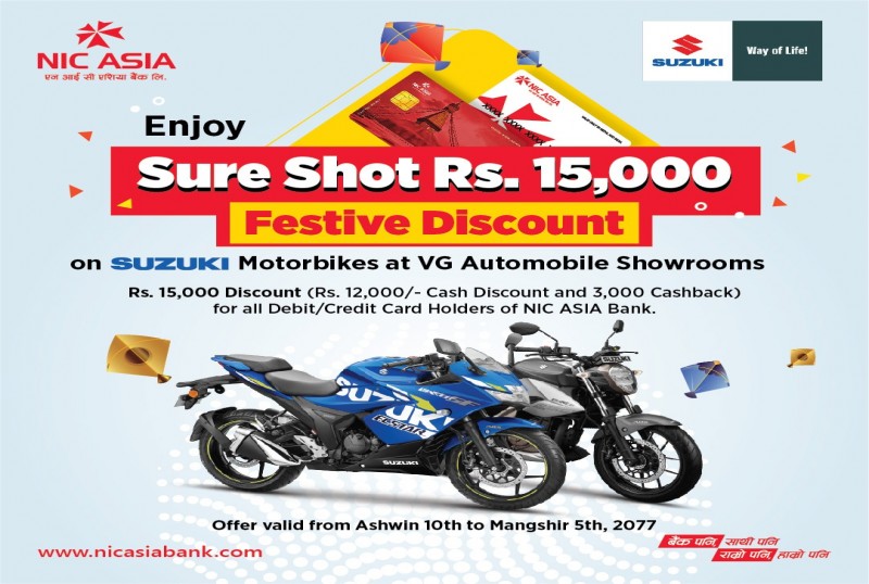एनआईसी एशियाका कार्डधनी लाई सुजुकी मोटरसाइकल खरिदमा छुट