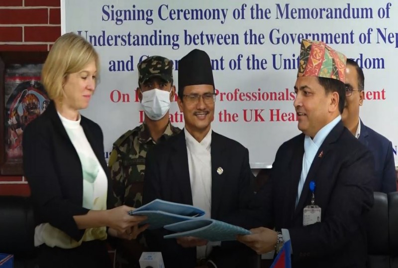 काठमाडौं - नेपाल सरकार र बेलायतबीच नेपाली नर्स र स्वास्थ्य क्षेत्रमा कामदार पठाउने समझदारीपत्रमा हस्ताक्षर भएको छ ।