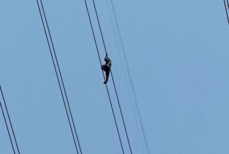 ९ घण्टापछि विद्युत प्रसारण लाइनमा चढेका व्यक्तिको सेनाको हेलिकप्टरबाट उद्धार