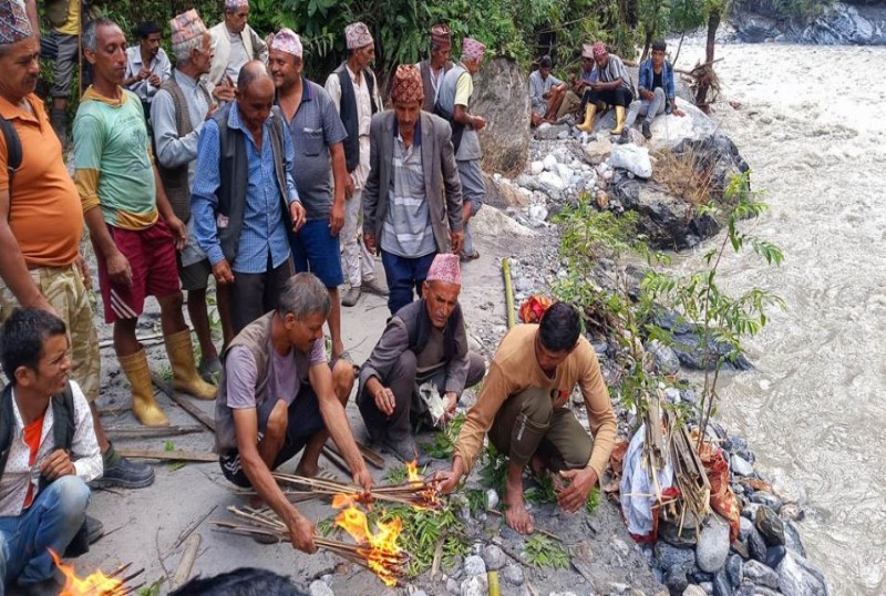 पहिरोमा बेपत्ता तीन जनालाई नभेटिएपछि कुशको शव बनाएर दाहसंस्कार