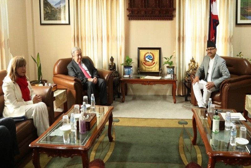 आइतबार बिहान १ बजे नेपाल आइपुगेका महासचिव गुटेरस र परराष्ट्रमन्त्री साउदबीच १५ मिनेटको शिष्टाचार भेटघाट भएको छ ।