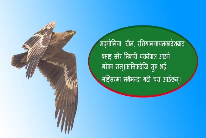 मांसाहारी प्रजातिका सिकार गरेर खाने चराहरू यसरी नेपाल आउने क्रम जारी रहेको वरिष्ठ चराविज्ञ डा. तुलसी सुवेदीले जानकारी दिए । “उत्तरबाट दक्षिणतर्फ बसाइ सर्ने क्रममा सिकारी चरा नेपालमा कति आउँदैछन् भनेर गणनासमेत भइरहेको छ,” उनले भने ।