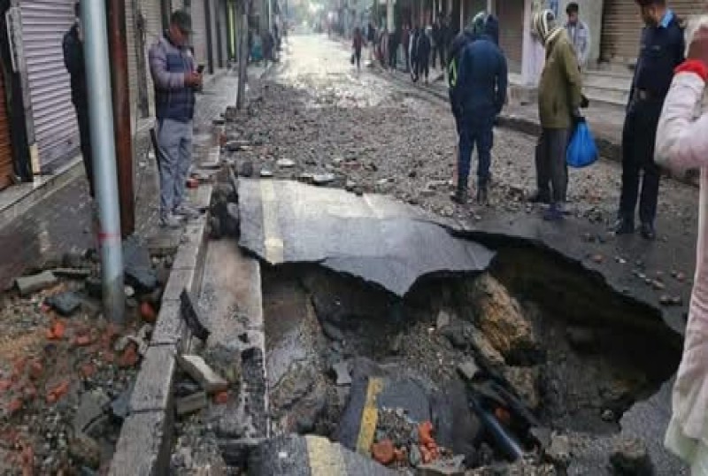 पाइप फुटेपछि सडकभरि नै पानी बगेको छ भने सडक समेत भत्किएको छ ।