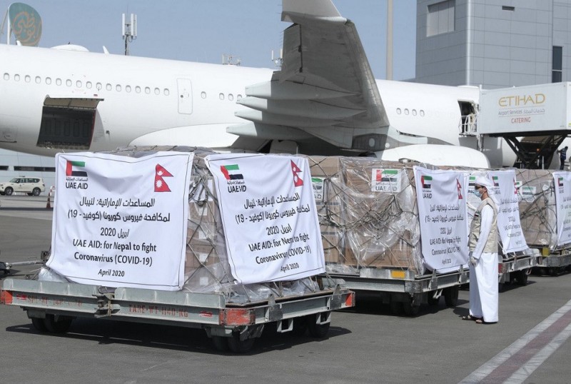 त्यस्तै इत्तिहादको जहाज पनि साँझ ५ बजे काठमाडौँ विमानस्थलमा अवतरण गरेको थियो । संयुक्त अरब इमिरेट्स (युएई)ले पनि नेपाललाई करिब १२ टन स्वास्थ्य सामग्री उपलब्ध गराएको छ ।