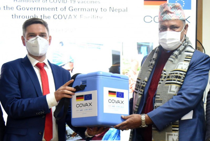 जर्मनीका राजदूत स्टेफन रुसेकले स्वास्थ्य तथा जनसंख्यामन्त्री विरोध खतिवडालाई मोडर्ना र जोन्सनको ४१ लाख ४२ हजार २५० डोज खोप प्रदान गरे। कोभ्यासमार्फत सो परिमाणको खोप नेपालले प्राप्त गरेको हो।