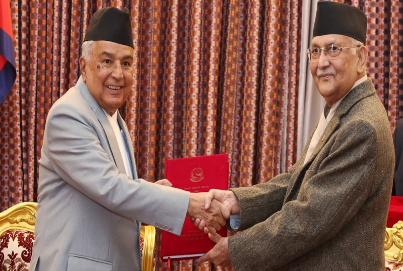 प्रधानमन्त्री ओलीले राष्ट्रपति पौडेललाई बुझाए सरकारको वार्षिक प्रतिवेदन