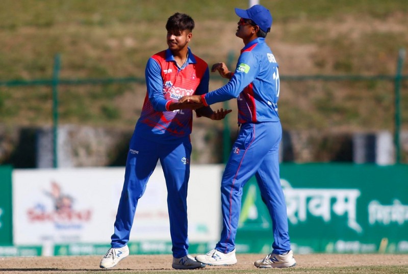 नेपालका लागि सोमपाल कामी, सन्दीप लामिछाने, कमलसिंह ऐरीले समान तीन/तीन विकेट लिए । सुशन भारीले एक विकेट लिए ।