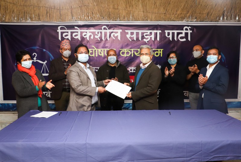 बुधबार भर्चुअल कार्यक्रममार्फत साझा र विवेकशील एकीकरण भई विवेकशील साझा पार्टी घोषणा भएको हो । एकता घोषणापत्रमा साझा पार्टीका संयोजक रवीन्द्र मिश्र र विवेकशील नेपाली दलका अध्यक्ष मिलन पाण्डेले हस्ताक्षर गरेका छन्।