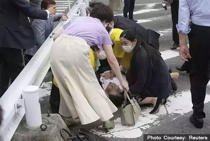 शुक्रबार बिहान साढे ११ बजे नारा सिटीमा स्ट्रिटमा स्पिच दिइरहेका बेला पछाडिबाट आबेमाथि गोली प्रहार भएको थियो । उनलाई दुई पटक गोली लागेको थियो । गोली लागेपछि उनी ढलेका थिए। उनी ढलेको ठाउँमा रगत देखिएको थियो। गोली लागेपछि सिन्जोलाई हृदयघात पनि भएको थियो ।