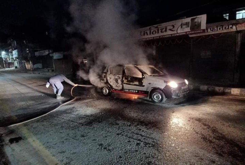 अज्ञात व्यक्तिद्वारा गोंगबुमा ट्याक्सी आगजनी