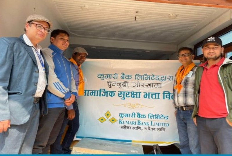 काठमाडौ - कुमारी बैंक लिमिटेडले ग्राहकको सेवा–सुविधालाई मध्यनजर गर्दै सडकको पहुँच नपुगेको स्थानमा भौतिक रुपमा नै सहयोग पु¥याउने अभिप्रायले चुमनुब्री गाउँपालिकामा हेलिकप्टर चार्टर गरेर वृद्धभत्ता पु¥याउने कार्य गरेको छ ।
