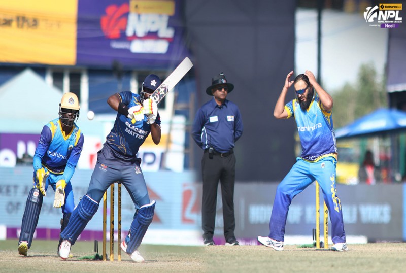 दिनेशले १९ बलमा ४ चौका र १ छक्का प्रहार गरे। पोखराले पावरप्लेमा २ विकेट गुमाउँदै ५२ रन बनाएको थियो। पहिलो विकेटका रुपमा पोखराले ओपनर एन्ड्रिज गोउसलाई गुमायो।