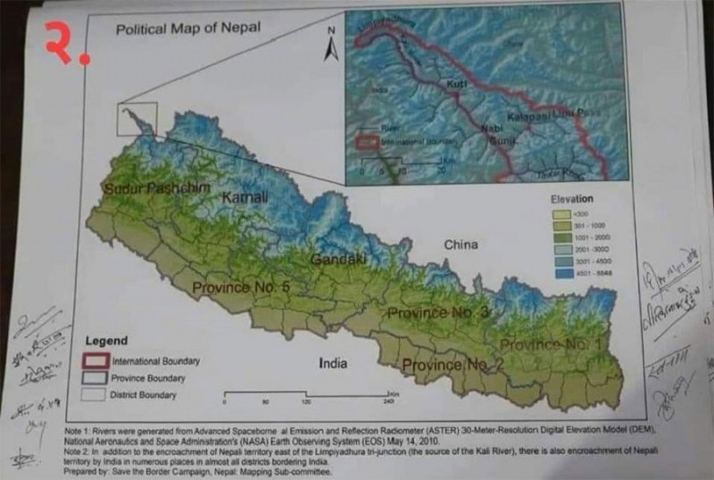 कालीको मुहान लिम्पियाधुरादेखि लिपुलेकसम्म भारतले अतिक्रमण गरेको नेपाली भूमि समेटेर नक्सा जारी गर्ने मन्त्रिपरिषद्ले निर्णय गरेको छ। अब नेपालको नक्सा प्रयोग भएका हरेक सरकारी दस्ताबेजमा छाप पनि परिवर्तन हुने छन् ।