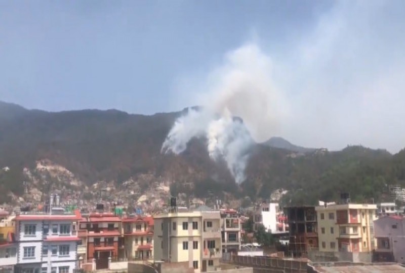आइतबार दिँउसो डढेलो लागेपछि सिम्रिक एयरको हेलिकप्टरमार्फत पानी खसालेर डढेलो नियन्त्रणमा लिइएको छ ।