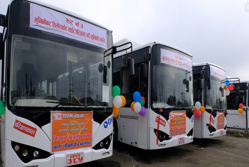 काठमाडौं ,भैरहवा - बुद्ध जन्मस्थल लुम्बिनीमा लामो समयदेखि थन्केर बसेका विद्युतीय बस आजबाट सुचारु भएकाे छ । बिहीबार लुम्बिनीमा आयोजित कार्यक्रममा लुम्बिनी विकास कोषका उपाध्यक्ष अवेधकुमार त्रिपाठी, प्रमुख जिल्ला अधिकारी भरतमणि पाण्डेलगायतले विद्युतीय बसको शुभारम्भ गरेका हुन् ।