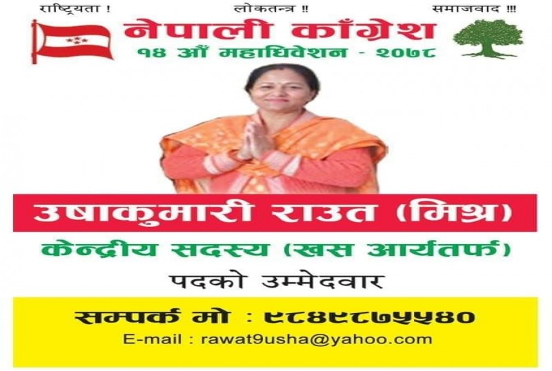 कांग्रेस केन्द्रीय सदस्यमा उषा राउतकाे उम्मेदवारी घोषणा,जित सुनिश्चित