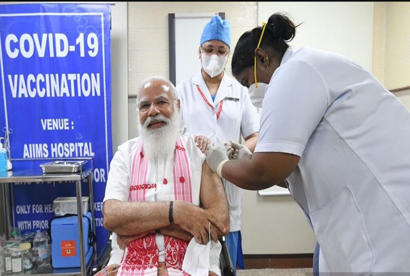 भारतीय प्रधानमन्त्री मोदीले लगाए कोरोनाविरुद्धको खोप