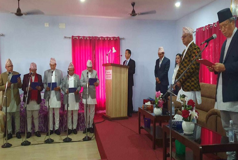 शुक्रबार नवनियुक्त मन्त्रीहरुलाई प्रदेश प्रमुख प्रशुराम खापुङले पद तथा गोपनीयताको शपथ खुवाएका हुन् । विस्तारित मन्त्रीमण्डल अनुसार आर्थिक मामिला तथा योजना मन्त्रालय रामबहादुर मगर, भौतिक पूर्वाधार विकास मन्त्रालय गणेश उप्रेती, आन्तरिक मामिला तथा कानुन मन्त्रालय लिलाबल्लभ अधिकारी, स्वास्थ्य मन्त्रालय राजेन्द्र कार्की, खानेपानी, सिँचाइ तथा ऊर्जा मन्त्रालय एकराज कार्की र सामाजिक विकास मन्त्रालयको जिम्मेवारी पाँचकर्ण राईले पाएका छन् ।