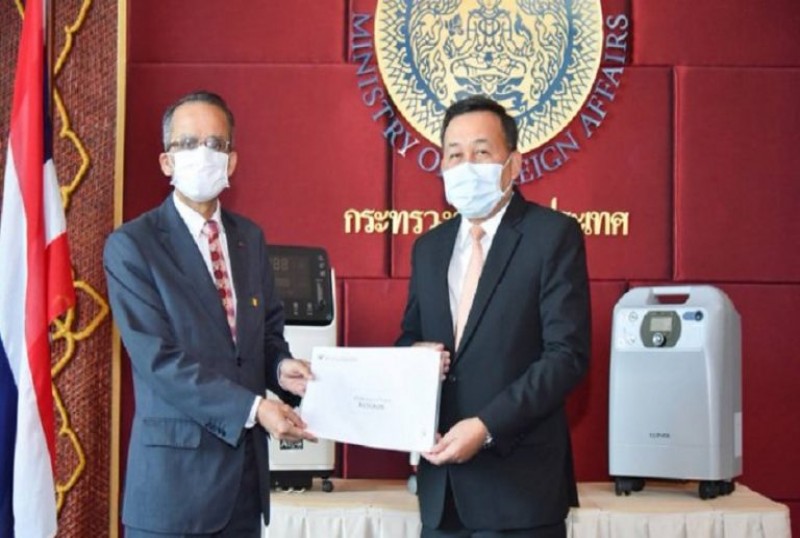 काठमाडौं - थाइल्यान्डको परराष्ट्र मन्त्रालय, थाइ ओभरसिज धम्मादुतभिक्खुस र भेरापुचोङ फाउण्डेशनले नेपाललाई ४६ वटा अक्सिजन कन्सट्रेटर प्रदान गरेका छन् ।