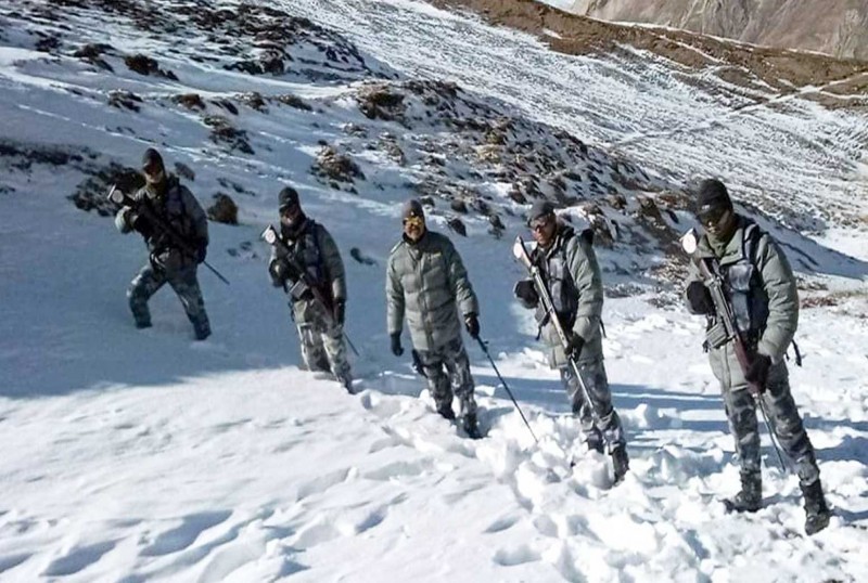 माइनस सात डिग्रीको तापक्रममा हिउँ छिचोल्दै सीमा क्षेत्रको गस्ती