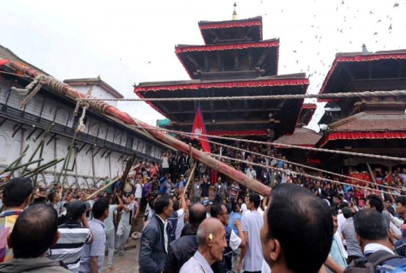 नेपाली सेनासमेतकाे सहयोगमा हनुमान ढोका (कालभैरव क्षेत्र)बाट इन्द्रजात्राको लिङ्गो ठड्याएर इन्द्रध्वजोत्थान गरिएको हो ।