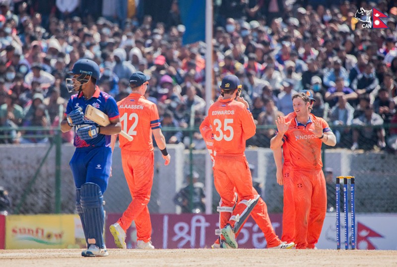 यसअघि टस जितेर पहिला ब्याटिंग गरेको नेपालले २० ओभरमा ८ विकेट गुमाउदै १८४ रन बनाएको थियो ।नेपालका लागि आसिफ सेखले सर्बाधिक ४७ रन बनाए भने गुलशन झाले ३४, कुशल मल्लले २६, कप्तान रोहित पौडेलले २५, कुशल भुर्तेलले २० रन बनाएका थिए ।त्यसैगरी नेदरल्याण्डसका बलर फ्रेड क्लासेन, टिम भान डेर गुगटेन, माइकल लेभिट र साइब्राण्ड एंगेलब्रेचटले २-२ विकेट लिएका थिए ।