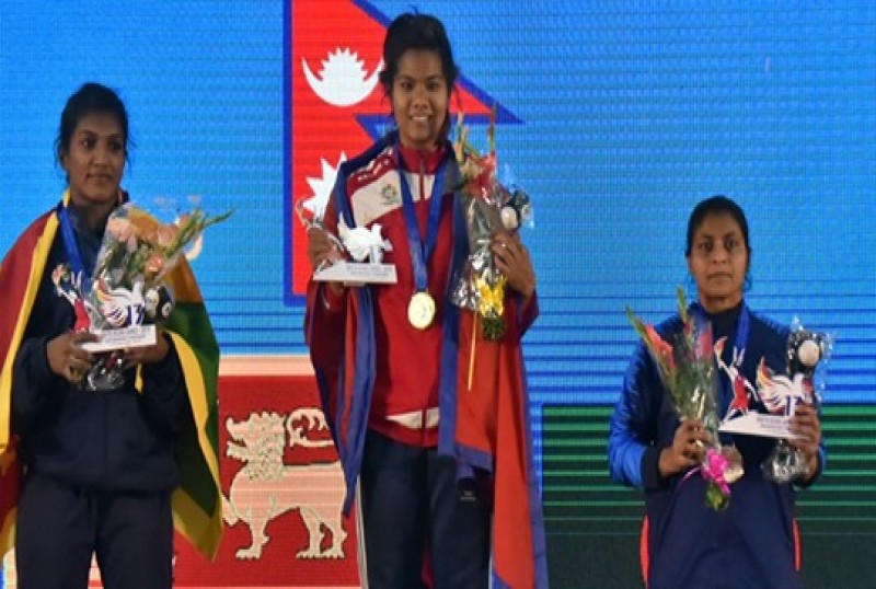 काठमाडौं - दक्षिण एसियाली खेलकुद सागमा भारोत्तोलनमा नेपालकी सञ्जु चौधरीले स्वर्ण जितेकी छिन् ।