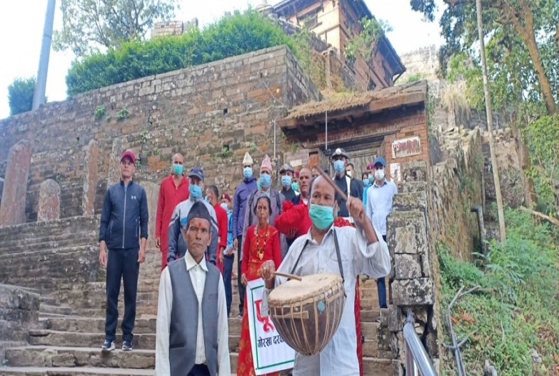 गोरखाबाट पठाइएको फूलपाती हनुमानढोकामा भित्र्याइयो