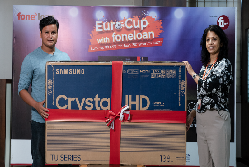 विजेता खातीले सामसङ्गको ५५–इन्च स्मार्ट टिभी जितेका छन् । ‘युरो कप विथ फोन लोन’ योजना असार १ गते देखी २३ गते सम्म चलेको थियो भने यसमा फोन लोन सन्जालका ५ वटा बैंक सहभागी भएका थिए । यो योजनामा लक्ष्मी बैंक, कुमारी बैंक, सिटिजन बैंक, नबिल बैंक र मेगा बैंकका फोनलोनका प्रयोगकर्ताहरु सहभागी हुन सक्ने थिए ।