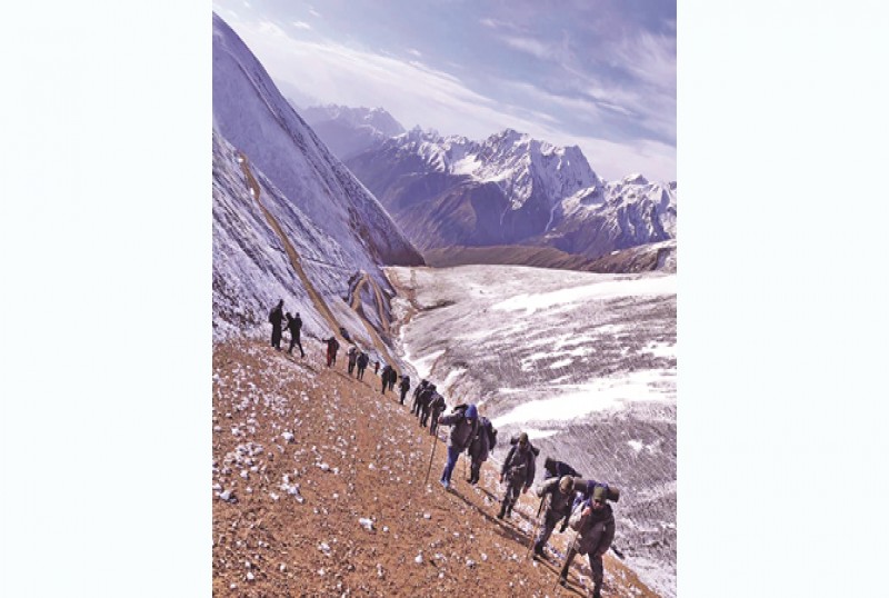 हिउँ छिचोल्दै हिल्सामा सशस्त्र प्रहरी