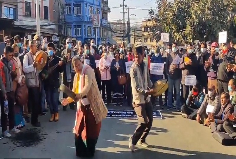 संसद विघटनविरुद्ध नागरिक समूहले डम्फू बजाएर गर्यो प्रदर्शन