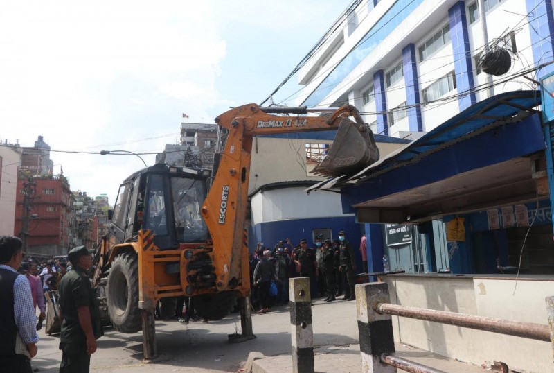 काठमाडौं महानगरले भत्कायो वीर अस्पताल क्षेत्रको अनधिकृत संरचना